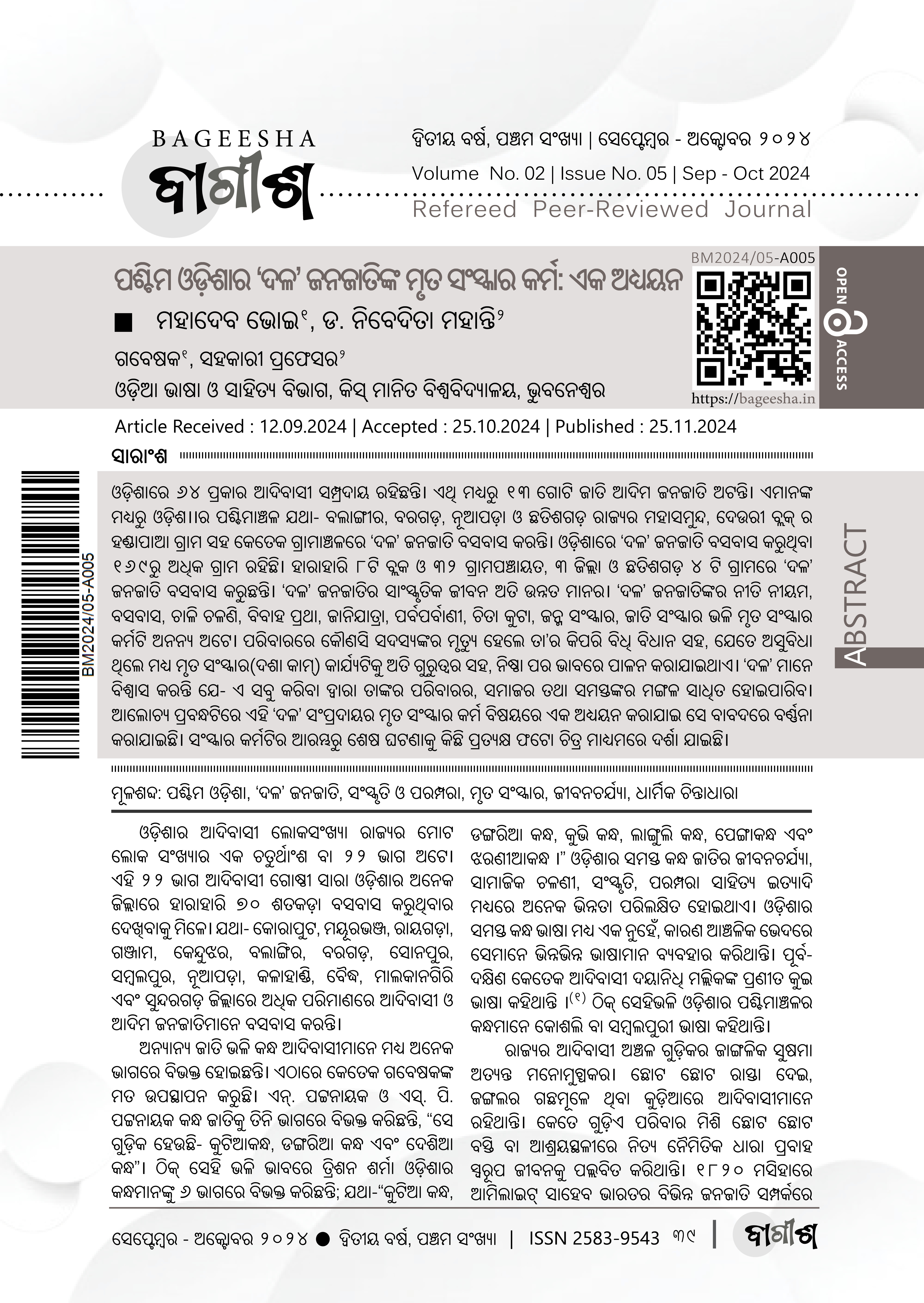 ପଶ୍ଚିମ ଓଡ଼ିଶାର ‘ଦଳ’ ଜନଜାତିଙ୍କ ମୃତ ସଂସ୍କାର କର୍ମ: ଏକ ଅଧ୍ୟୟନ