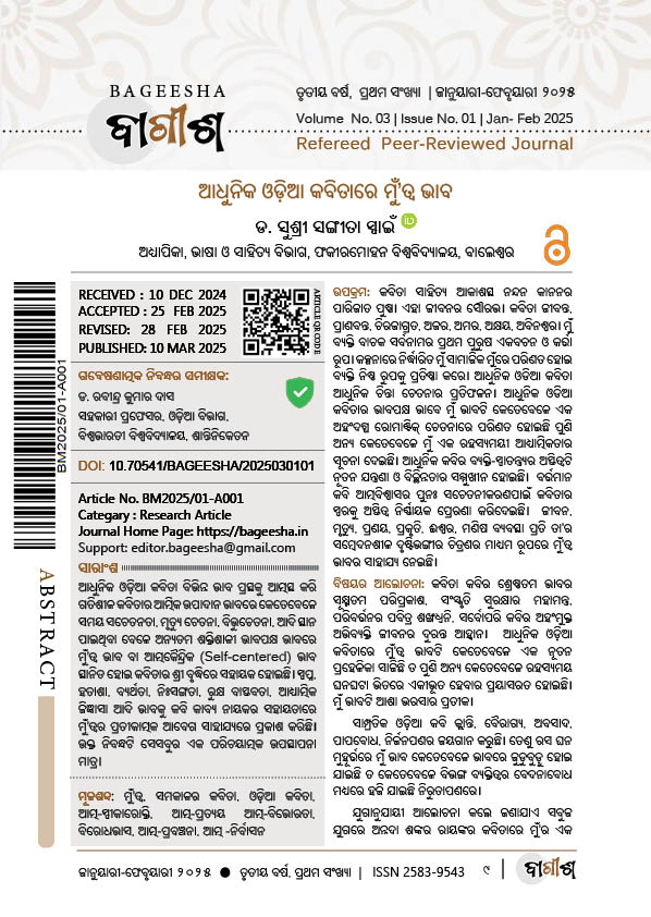 Swain, Shusri Sangita, Adhunika Odia Kabitaare Mun’twa Bhaba, Bageesha, Vol. No. 03, Issue No. 01, January-February 2025, Article No: BM2025/01-A001| Page- 09-12| DOI: https://doi.org/10.70541/BAGEESHA/2025030101